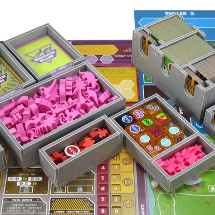 Органайзер для игры Dinosaur Island позволит хранить все компоненты в полном порядке и избавит от ненужной траты времени по разбору и сортировке игровых элементов.
