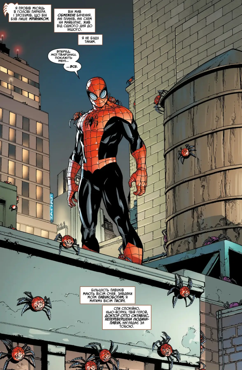 Питер Паркер все життя боролся за ради лучшего света, но его история драматично завершилась власною фатальной жертвой. Сейчас закрытие ворога Питера, Доктор Восьминиг, привело к полному контролю над его телом, спогади и все его життя. Віднині Отто Октавіус — Людина-Паук! И в сочетании с богатством довести, что перейдет своего посредника в всех уведомлениях. Если его бойцова посвятит себя святости, то он будет зорким віч-на-віч с новою зловещей шісткою!