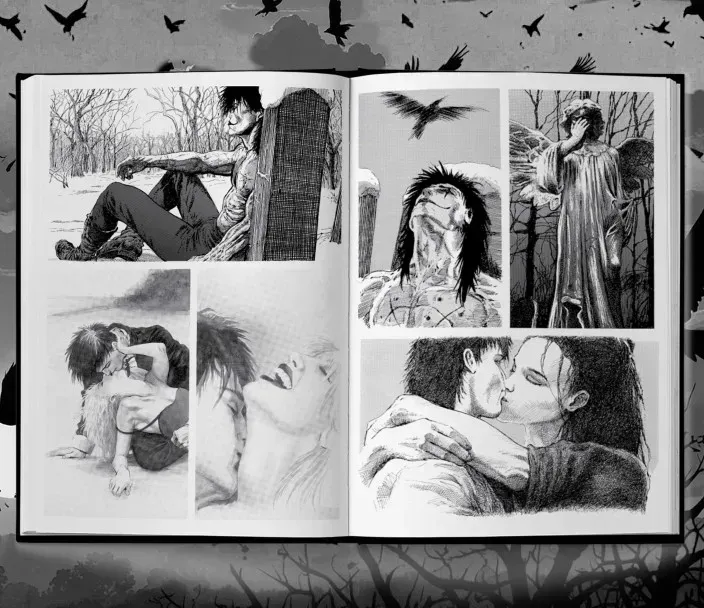 Произведение определяется не только глубиной сюжета, но и безупречной графикой. Рисунки, созданные мастером, переносят читателя в мрачный мир, где каждая линия имеет свой собственный смысл и эмоциональную окраску.