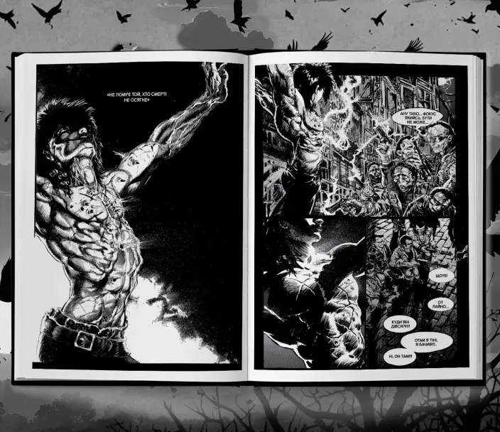О'Барр мастерски вплетает элементы мистики и философии смерти, раскрывая внутренний мир героя через его встречи с загадочным вороном — птицей, которая становится символом духовной трансформации и перехода из тьмы к свету, от смерти к возрождению.