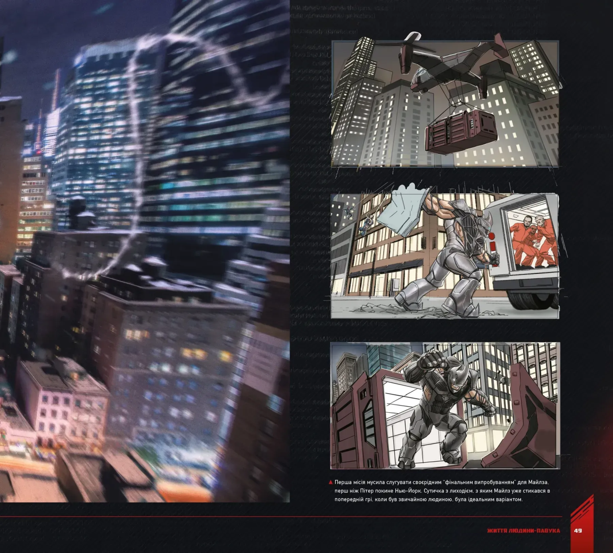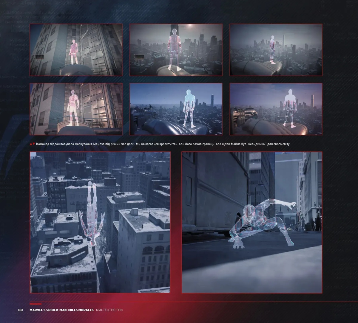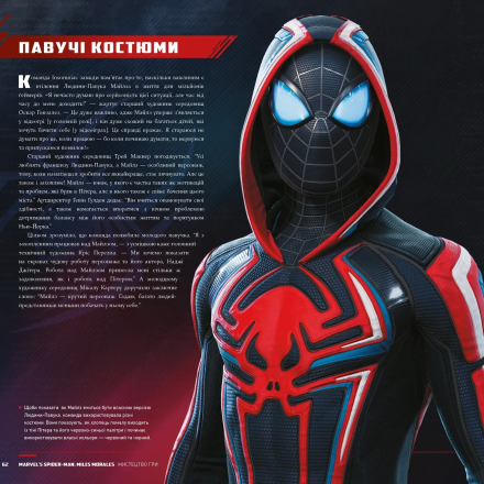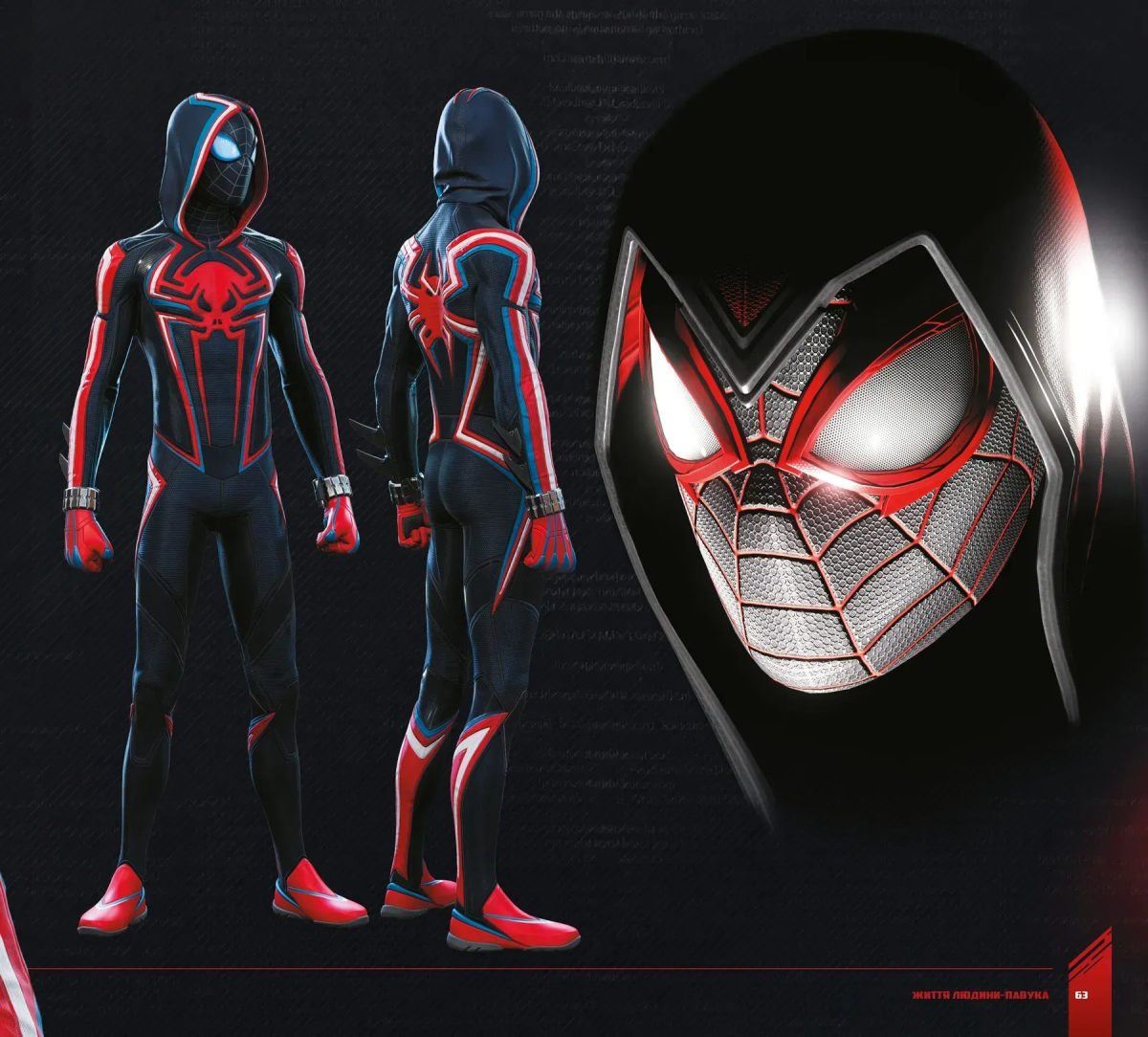Процесс создания долгожданной игры был задокументирован в артбуке «Искусство Игры Marvel's Spider-Man: Miles Morales». Огромная книга в твердой обложке, наполненная концептами персонажей, локаций, технологий, гаджетов и, конечно же, паучих костюмов! И это всего лишь часть всего, что удалось вместить на 192 страницах. Все это дополняется подробными комментариями команды разработчиков, художников и геймдизайнеров.