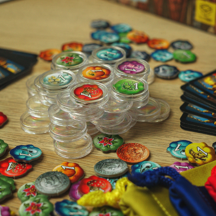 Комплект из 4-х мешочков 15х17 см к игре “Шарлатаны из Кведлинбурга” (4 цвета). Цвета мешочков могут отличаться от размещённых на фото.