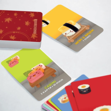 В этой быстрой карточной игре цель состоит в том, чтобы собрать лучшее сочетание блюд суши, когда они передаются от одного игрока к другому.