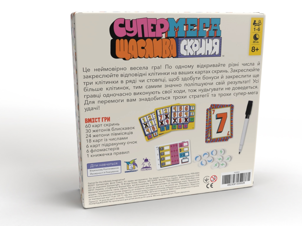 - Если она показывает число – его можно вычеркнуть на листах игроков. Для изменения числа можно использовать один или несколько жетонов Молний. Если при этом была зачеркнута линия по горизонтали или вертикали – активируется бонусный «ящик».