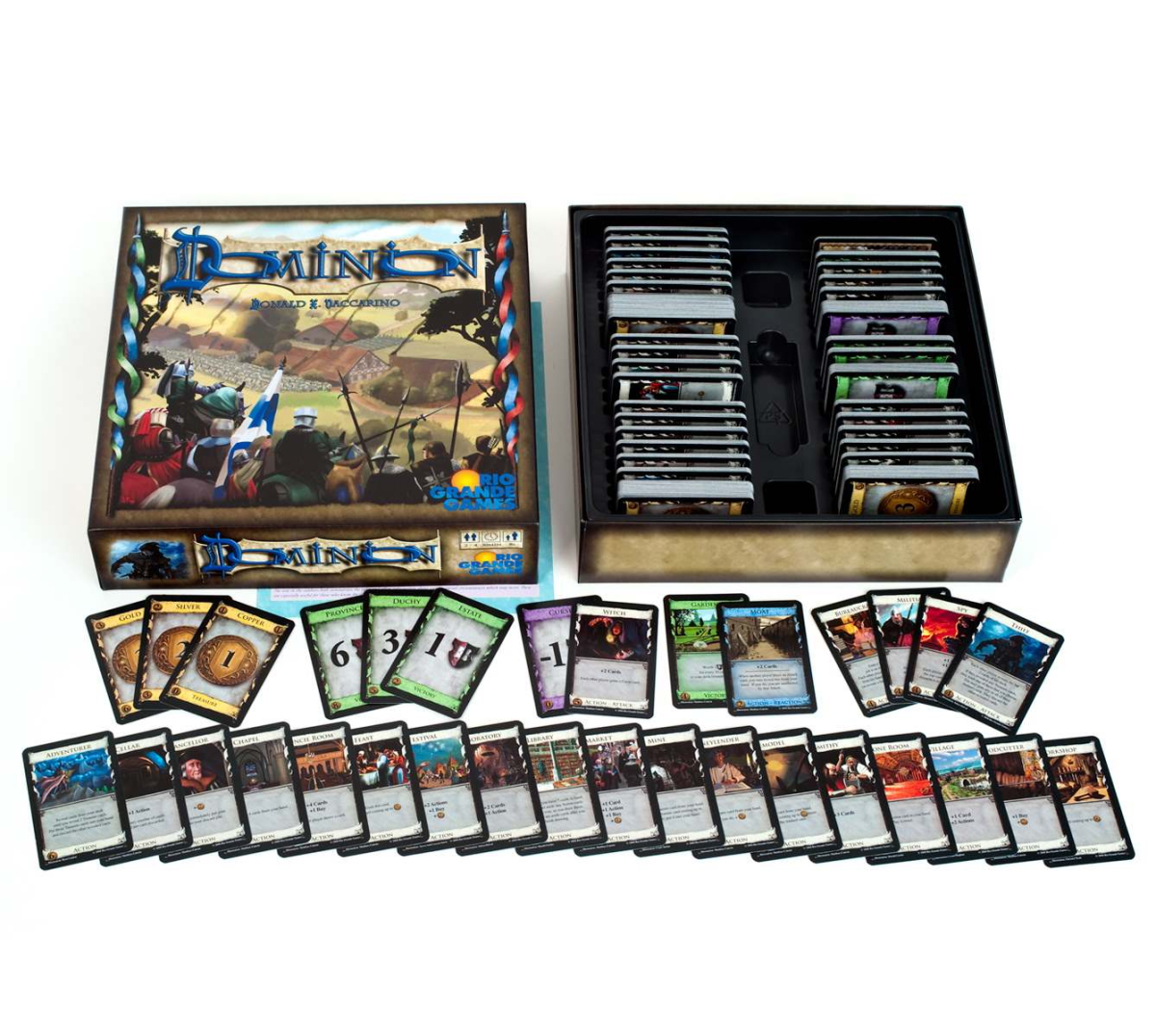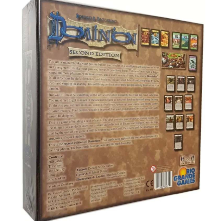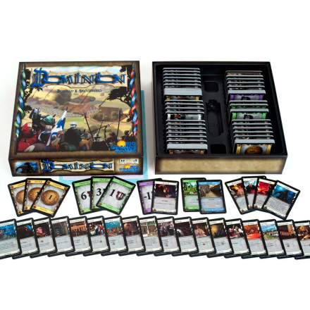 Перед вами второе издание одной из самых известных колодостроительных настольных игр под названием Доминион. Ее автор, Дональд Вакарино, если не изобрел жанр декбилдинга, то как минимум вдохнул в него новую жизнь. При довольно простых правилах настольная игра Доминион может похвастаться быстрым геймплеем, и высоким уровнем реиграбельности.