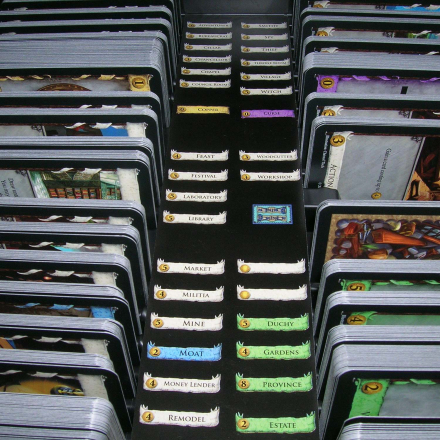 Каждый из игроков получает стартовую колоду карт и игра начинается. В свой ход участник разыгрывает карты с руки в удобном ему порядке, имея возможность покупать новые карты за монеты и разыгрывать действия, указанные на картах. Покупая серебряные или даже золотые монеты вы добавляете в колоду возможность покупать более дорогие карты, а те в свою очередь дают вам возможность разыгрывать больше действий. Цель игры - покупать провинции и графства. И хотя эти карты будут засорять вашу колоду, они также и будут приносить вам большое количество победных баллов.