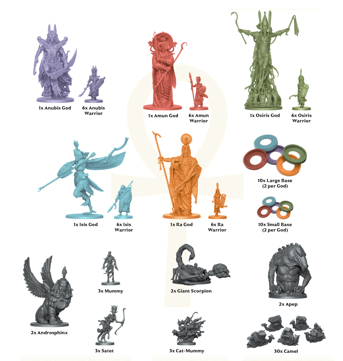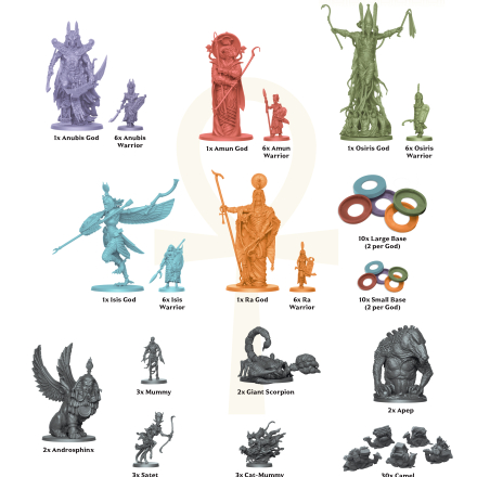 В настольной игре «Ankh: Gods of Egypt» участники сыграют за могущественных богов Древнего Египта – бога солнца Ра, бога мертвых Анубиса, богиню-защитницу Исиду, бога тайных знаний Амуна и бога загробного мира Осириса. В ходе игры они буду создавать армии, призывать мифических существ (Апопа, Андросфинкса, мумию, гигантского скорпиона и других монстров), отправлять караваны, строить величественные монументы и воевать с вражескими армиями.