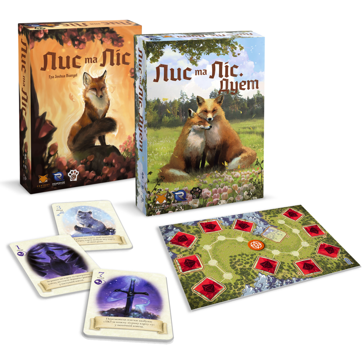 «Лис и Лес Дуэт» - это вторая игра в серии The Fox in the Forest. В то время как предыдущая настолка на взятки была сопернической дуэлькой, «Лис и Лес Дуэт» – это кооперативная игра с ограничением общения. В основе правил все еще карточные взятки, однако теперь вы еще и будете путешествовать по игровому полю для сбора волшебных кристаллов, чтобы спасти музыканта, которого похитили феи.