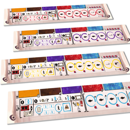 - События. Вид события всегда зависит от только что завершившегося месяца. Между сезонами вы будете обновлять сезонные компоненты, такие как жетоны рыбы, кисетов и трубок, в некоторые месяцы вы будете размещать монеты на карты не наемных мастеров, а между некоторыми месяцами и вообще будут пожары.В конце каждого из сезонов игроки также собирают зарплату с каждой карты своих мастеров (это могут быть деньги, товары или ики, победные очки), а затем должны оплатить черты каждому рабочему. Вы должны заплатить всем, кому только сможете, и сами определяете приоритет выплаты. Всех мастеров, которым не заплатили, изымают из игры.
