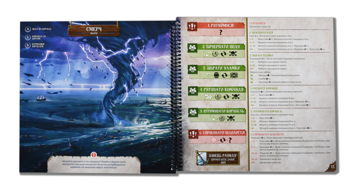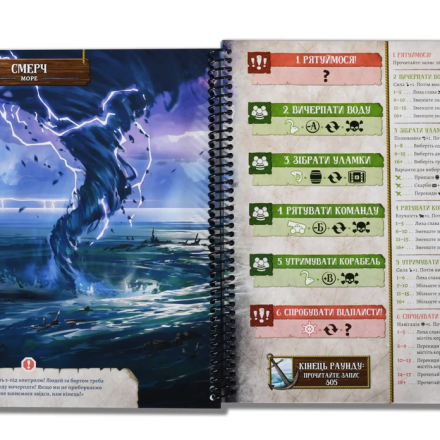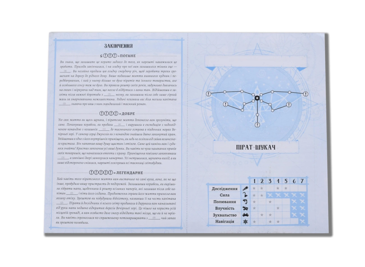 - Цель сценария. Если игроки достигли цели сценария, все пираты, завершившие 4 события созвездия, побеждают. Если пират завершил все 5 событий своего созвездия, ему присуждается легендарная победа. Каждый игрок сверяет свои успехи со списком на листе и зачитывает свой результат.