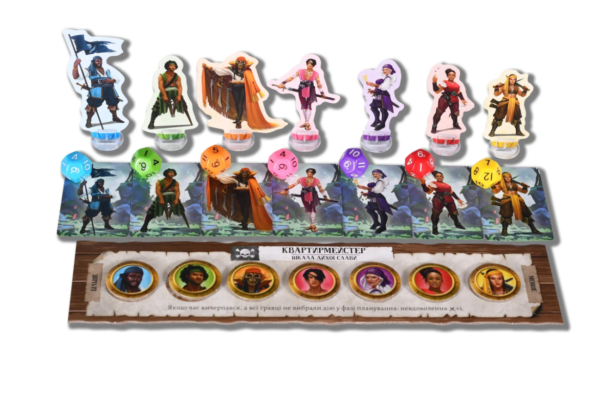 Запустив сценарий, участники раскрывают книгу локаций на нужной странице. Рядом кладут карту, размещают на ней фигурку корабля и плитки локаций, как указано в сценарии. Игроки выбирают фигурки пиратов, получают 12-гранные кости соответствующих цветов, заполняют листы пиратов, распределяют роли и обязанности, берут планшеты и компоненты персонажей: