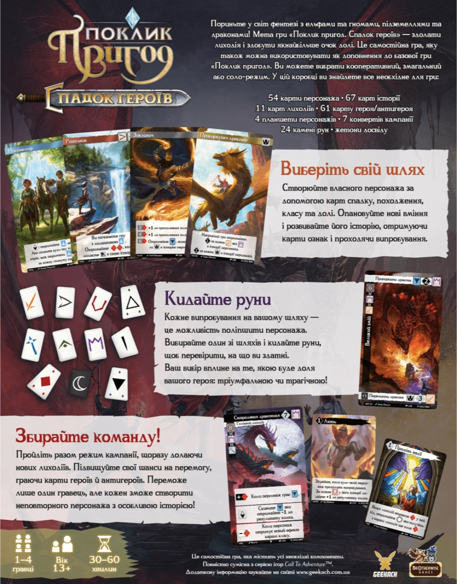В игре «Зов приключений. Наследие героев» участники вместе борются против могущественного врага. Каждый игрок создает историю собственного персонажа, преисполненную вызовов и подвигов, триумфов и трагедий. Развивайте своего персонажа, проходите испытания и объединяйтесь с другими игроками, чтобы одолеть злодея и одержать победу!