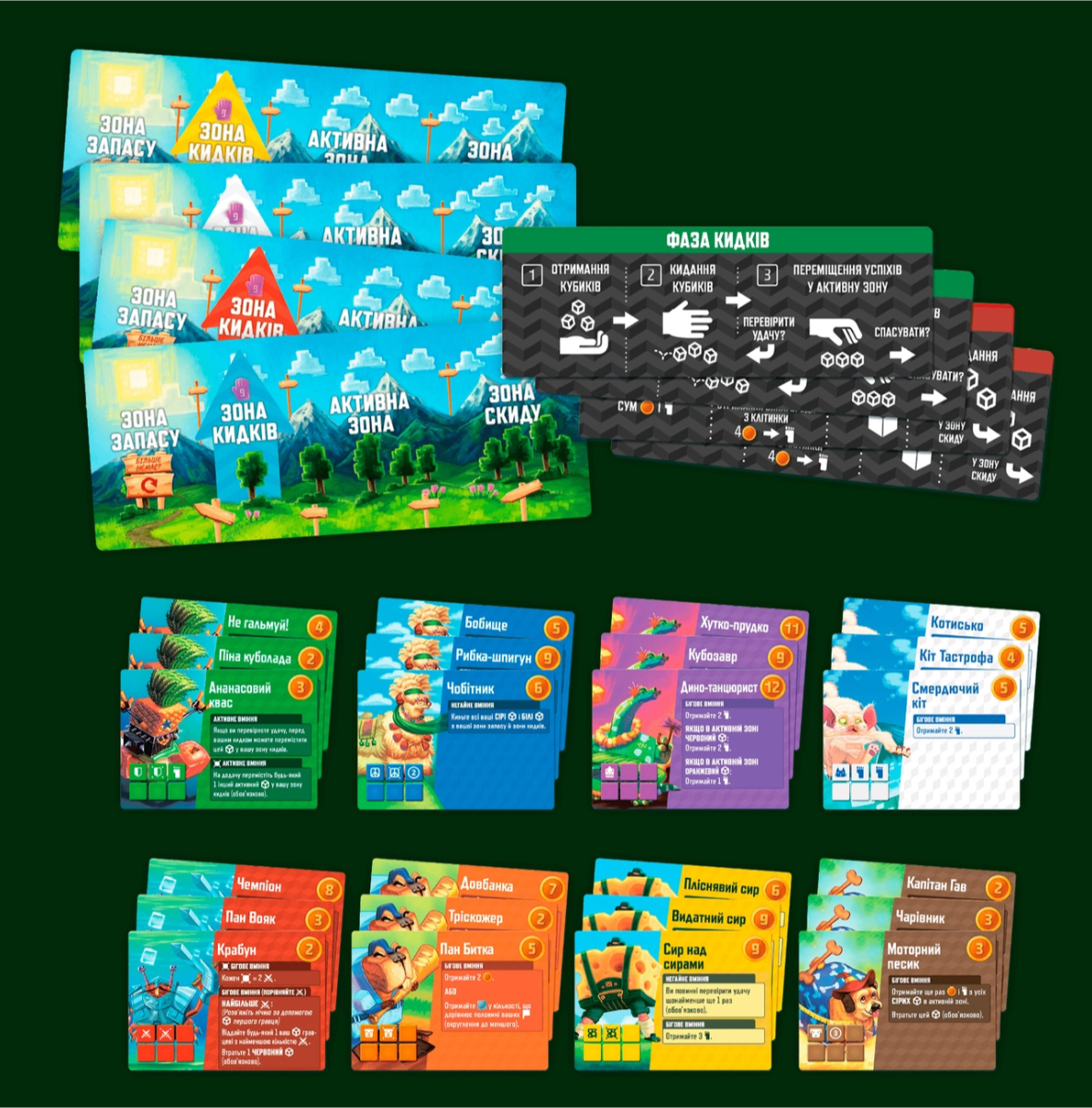 Каждый игрок перемещает из зоны запаса на планшете в зону бросков над планшетом столько кубиков, какой лимит его кубиков. Начальный лимит – 9 кубиков. Он навсегда увеличивается на 1 за каждый полученный жетон руки. Также игрок берет по 1 кубику за каждую красную линию на трассе между фишкой его бегуна и фишкой лидера. Если в зоне запаса закончились кубики, игрок перемещает в нее все свои кубики из сброса.