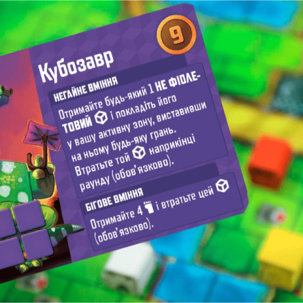 - Монеты и кредиты. Можно купить максимум два кубика разных цветов, потратив выпавшие монеты и кредиты. Купленные кубики кладутся в зону сброса.