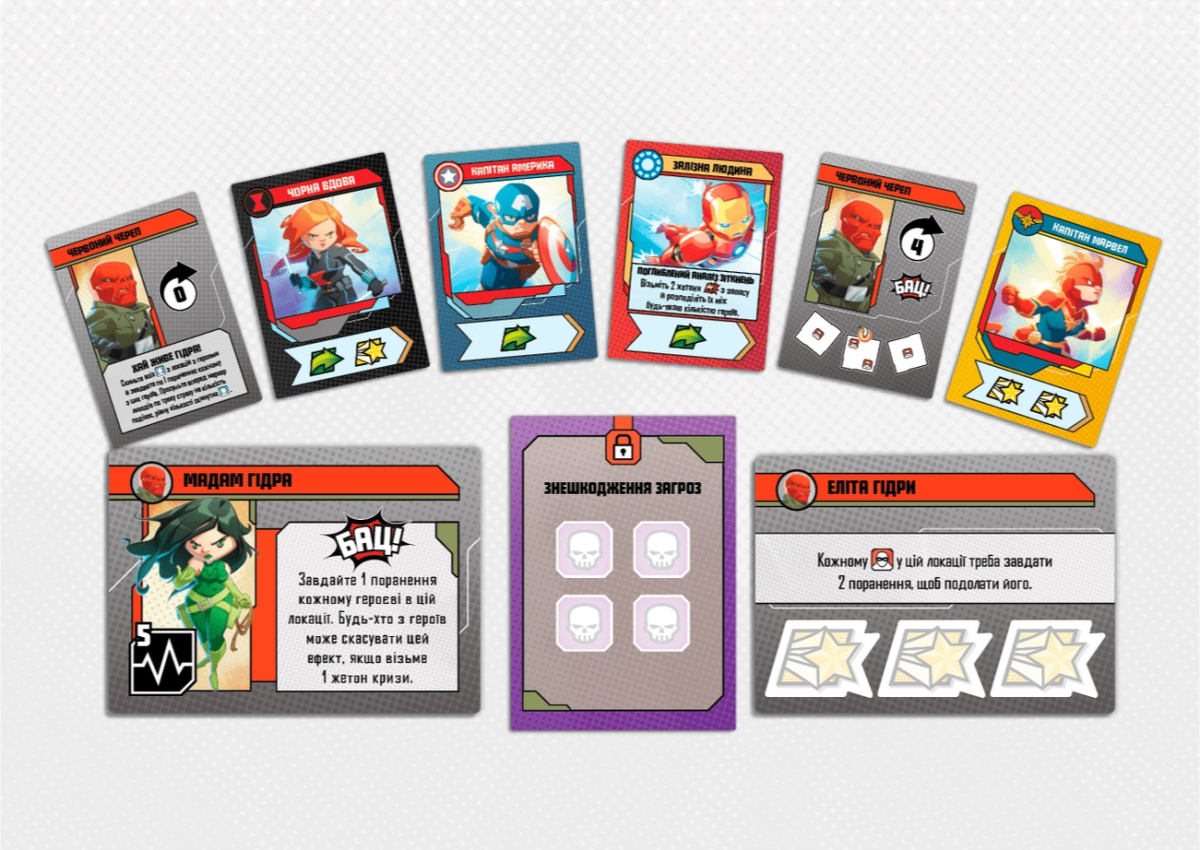 - Берет одну карту из личной колоды на руку (или 4, если герой был в нокауте. Затем фигурка нокаутированного героя поднимается).
