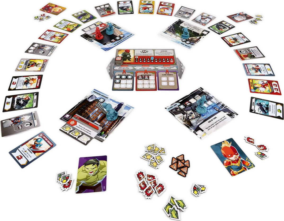 Играя карты, игроки будут перемещать своих героев по локациям, спасать невинных горожан, устранять угрозы и уничтожать бандитов и приспешников злодея. Выполнив 2 миссии из 3, игроки смогут прямо атаковать большого босса. Игроки побеждают, если им удается обнулить здоровье суперзлодея.