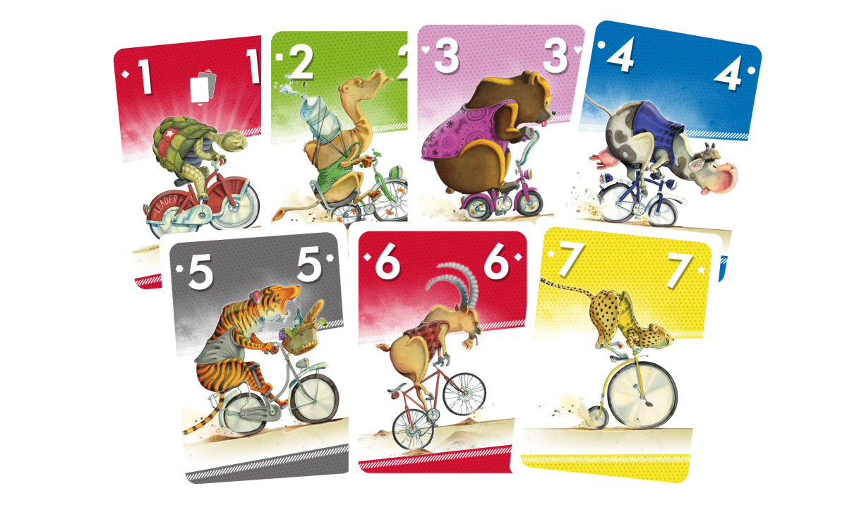 В начале игры все карты велосипедистов перетасовываются. Это карты 7 команд разных цветов с картами животных от 1 до 7, а также 6 карт отчаянных зайцев со значениями от 25 до 50. Отчаянные зайцы всегда ездят поодиночке, они не принадлежат ни к одной команде, поэтому с ними нельзя создавать комбинации. Игроки получают по 11 случайных карт из этой колоды велосипедистов.