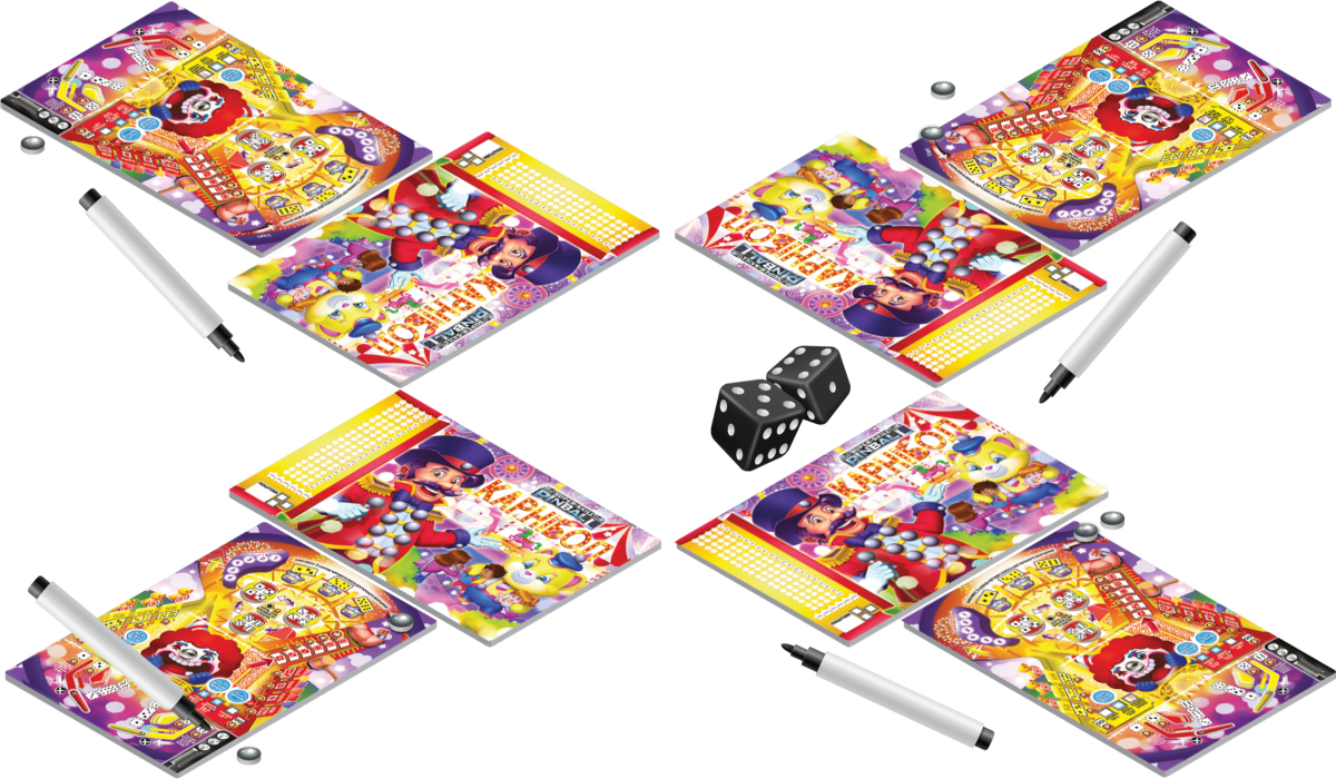 Сотрите отметки со всех ячеек, обведенных пунктирной линией. Зарисуйте следующий кружочек на треке раундов. Снова разместите один жетон шарика на стрелке «Старт». Ваш следующий раунд начинается вместе со следующим броском кубиков.