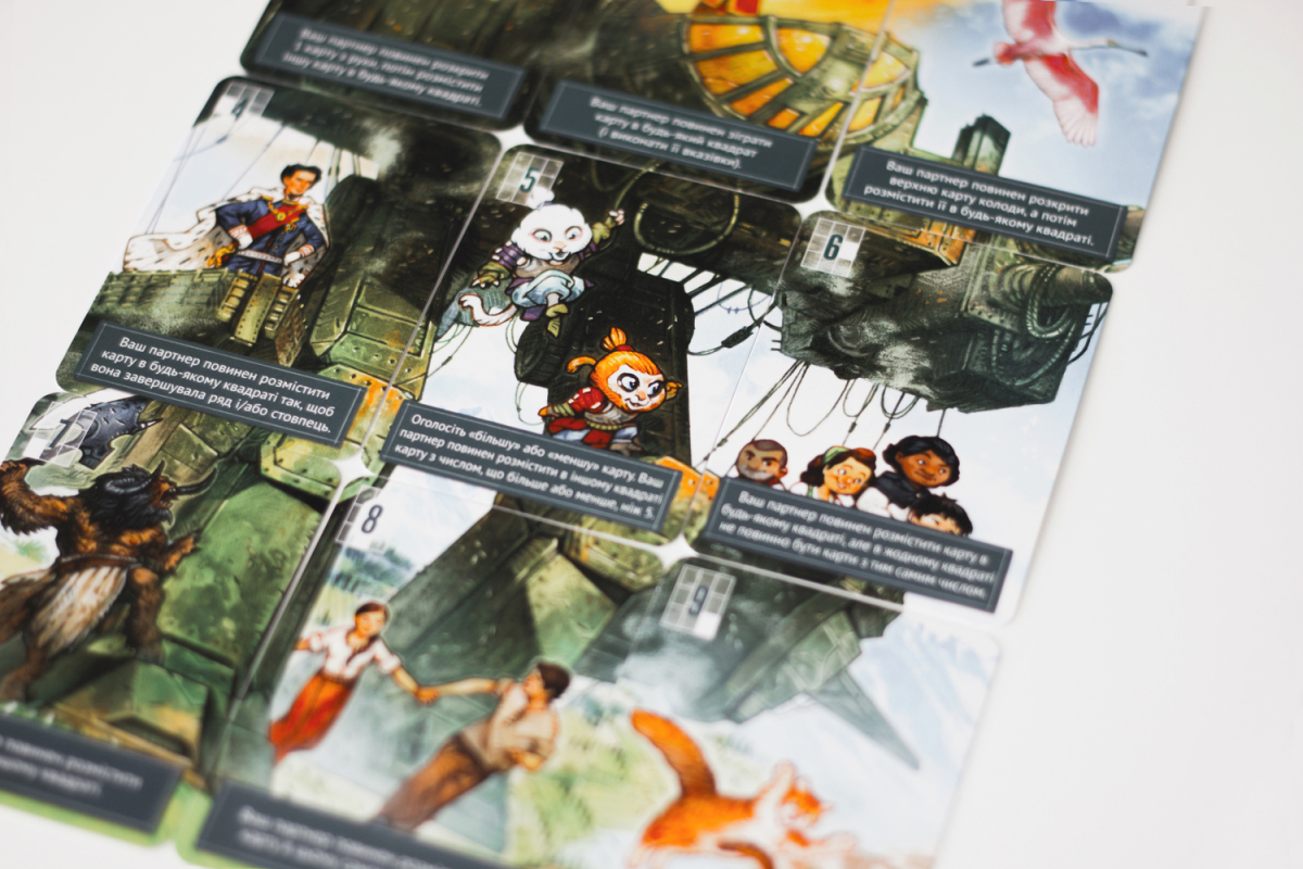 Каждая размещенная карта должна ортогонально прилегать хотя бы к одной из карт в квадрате. Карты должны размещаться в квадрате согласно указаниям на них (в левом верхнем углу) и образовывать общий рисунок.