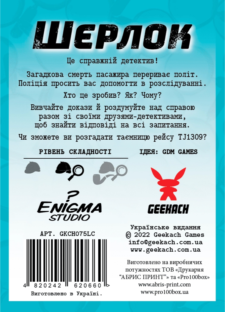 "Sherlock" (также известная как "Элементарно") – популярная серия быстрых детективных кооперативов для 1-8 игроков. В 2019 году эта игра стала номинантом престижного конкурса "Spiel des Jahres" (Игра года в Германии). В каждой коробочке игроков ждет отдельное дело. Это интересный детективный филлер, который можно расследовать соло, с друзьями или членами семьи. Игра понравится как новичкам, так и опытным игрокам.