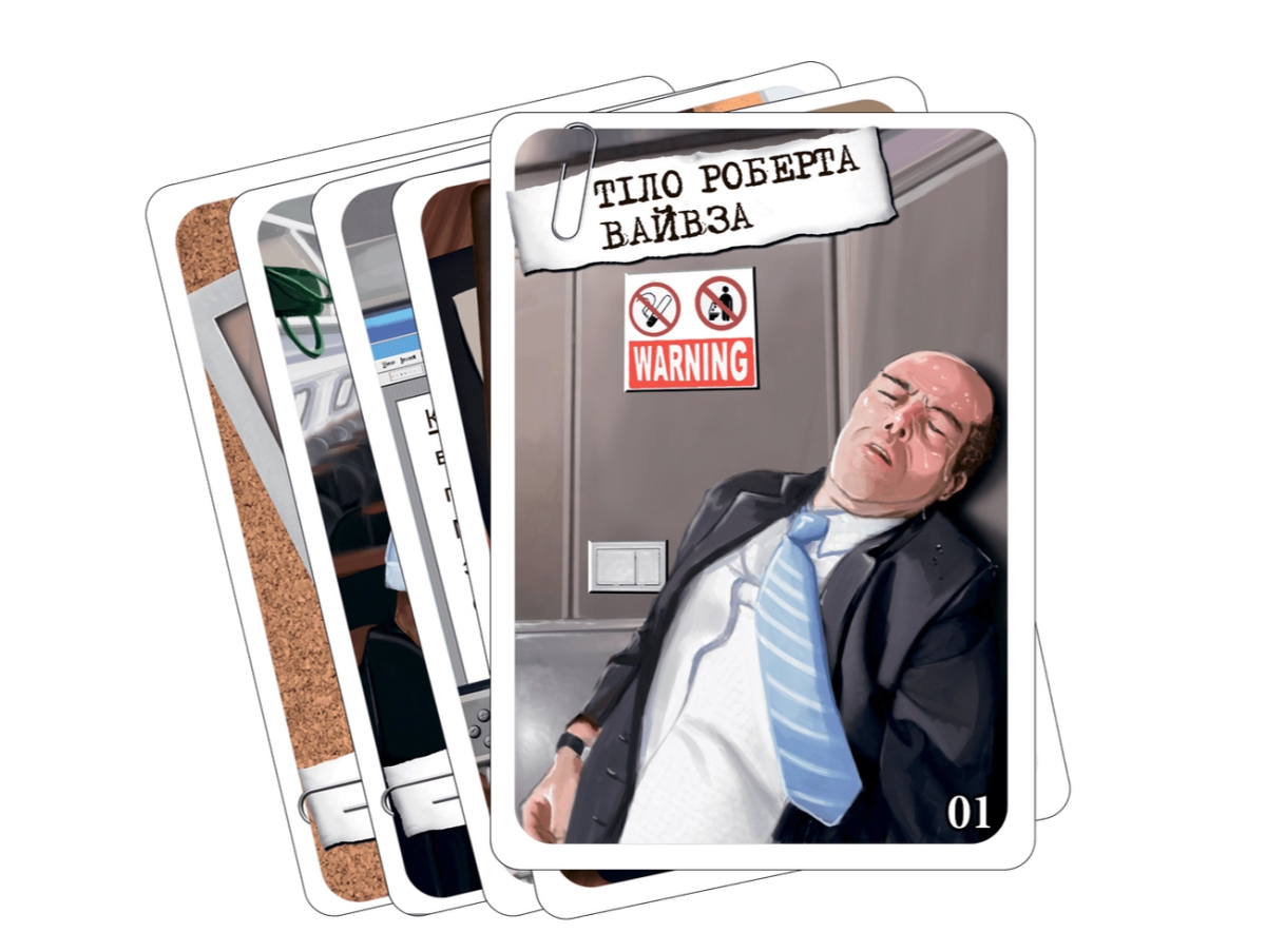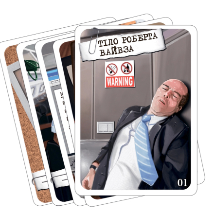- Выложить улику. Игрок выбирает карту на своей руке и кладет ее лицом вверх в центре стола. Информация на ней теперь доступна всем.