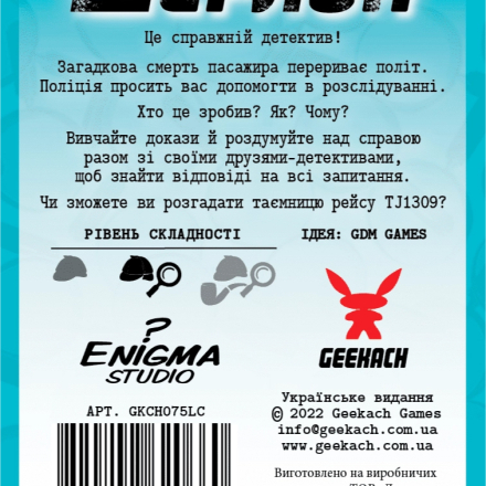 Борт TJ1309 экстренно заходит на посадку из-за внезапной смерти пассажира. Полиция просит вас помочь в расследовании. Кто это сделал? Как? Почему? Изучайте улики и раздумывайте над делом вместе со своими друзьями-детективами, чтобы дать ответы на все вопросы. Сможете ли вы разгадать тайну рейса TJ1309?