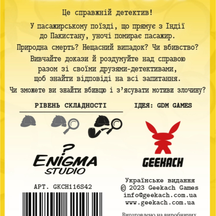 Настольная игра "Шерлок. Убийство в поезде" переносит участников в 1963 год. Действия происходят в поезде, следующем из Индии в Пакистан. По прибытии в Карачи в одном купе находят мертвого пассажира.
