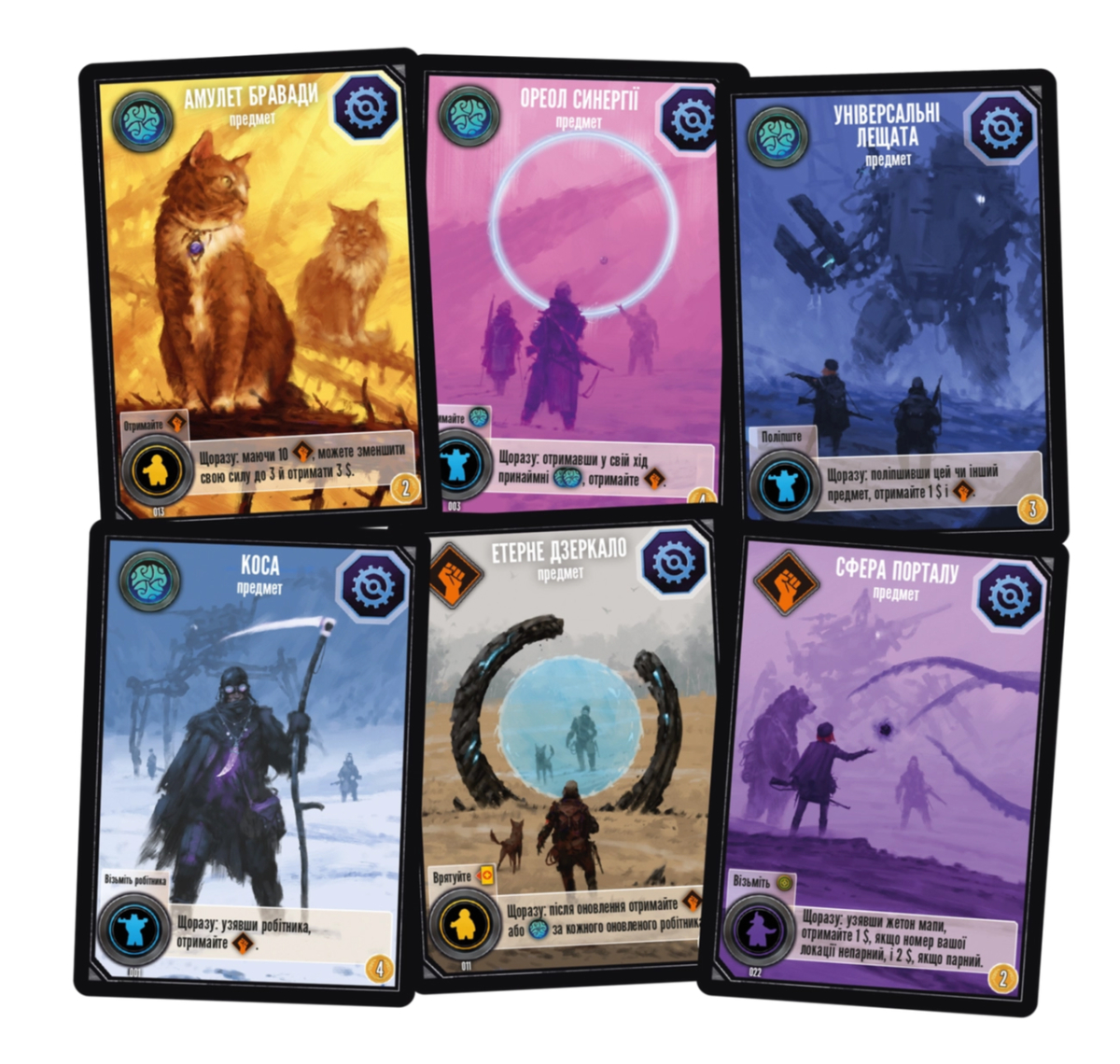 - ПЕРЕМЕЩЕНИЕ. Переместите своего меха в одну из незанятых локаций на расстояние от 1 до 3 локаций. Достигнув закрытой локации, возьмите с нее жетон карты, переверните плитку локации и добавьте жетоны скверны из мешочка.