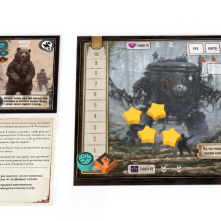 - КАРТА. Сыграйте 1 карту с руки в ряд активации, чтобы получить выгоду от карты. Можете также разместить соответствующего рабочего на этой карте, чтобы активировать ее особое свойство. Когда ваш мех находится в локации, соответствующей номеру контролируемой вами карты задания, можете оплатить стоимость задания и получить выгоду. Подложите карту задания под верхний край планшета меха.