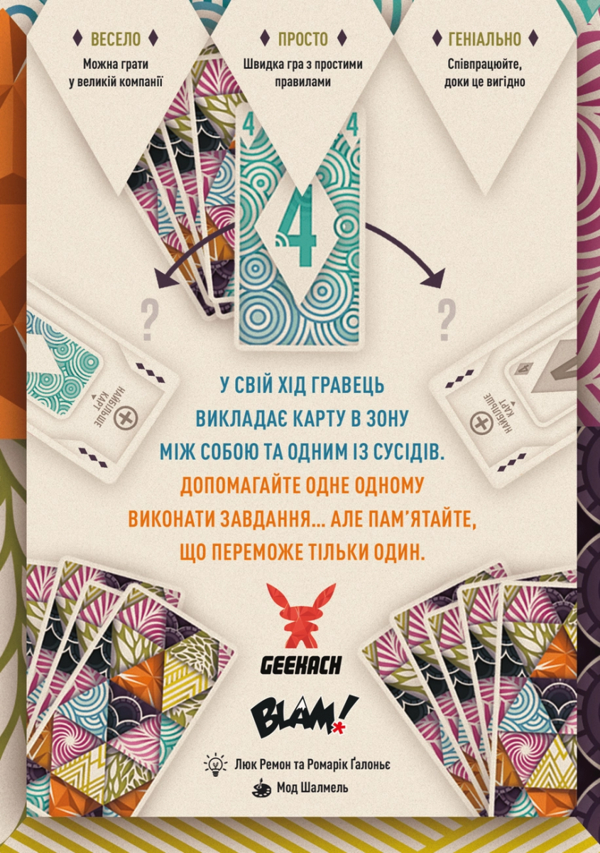 Быстрая абстрактная пати-игра с драфтом и кооперацией. Настольная игра "Splito" вышла в 2022 году. Это увлекательный карточный филлер с гениально простыми правилами. "Splito" идеально подойдет для игры с друзьями или для семейных посиделок и понравится всем участникам, несмотря на возраст или игровой опыт.