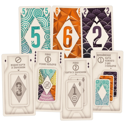 - Набор. В зоне должен быть определенный набор карт разных цветов и/или значений.