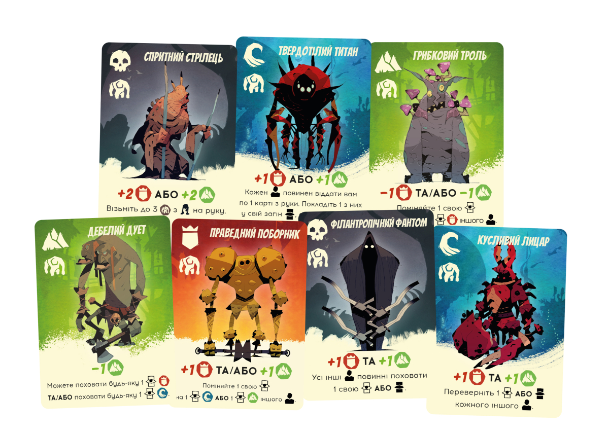 - Новые карты героев-хранителей имеют очень мощные эффекты, и всякий раз, когда кто отправляет такого героя на кладбище, он также применяет свойства одной из новых карт судьбы. Впрочем, розыгрыш таких героев всегда продвигает маркер Телохранителей на два деления вперед на треке влияния.