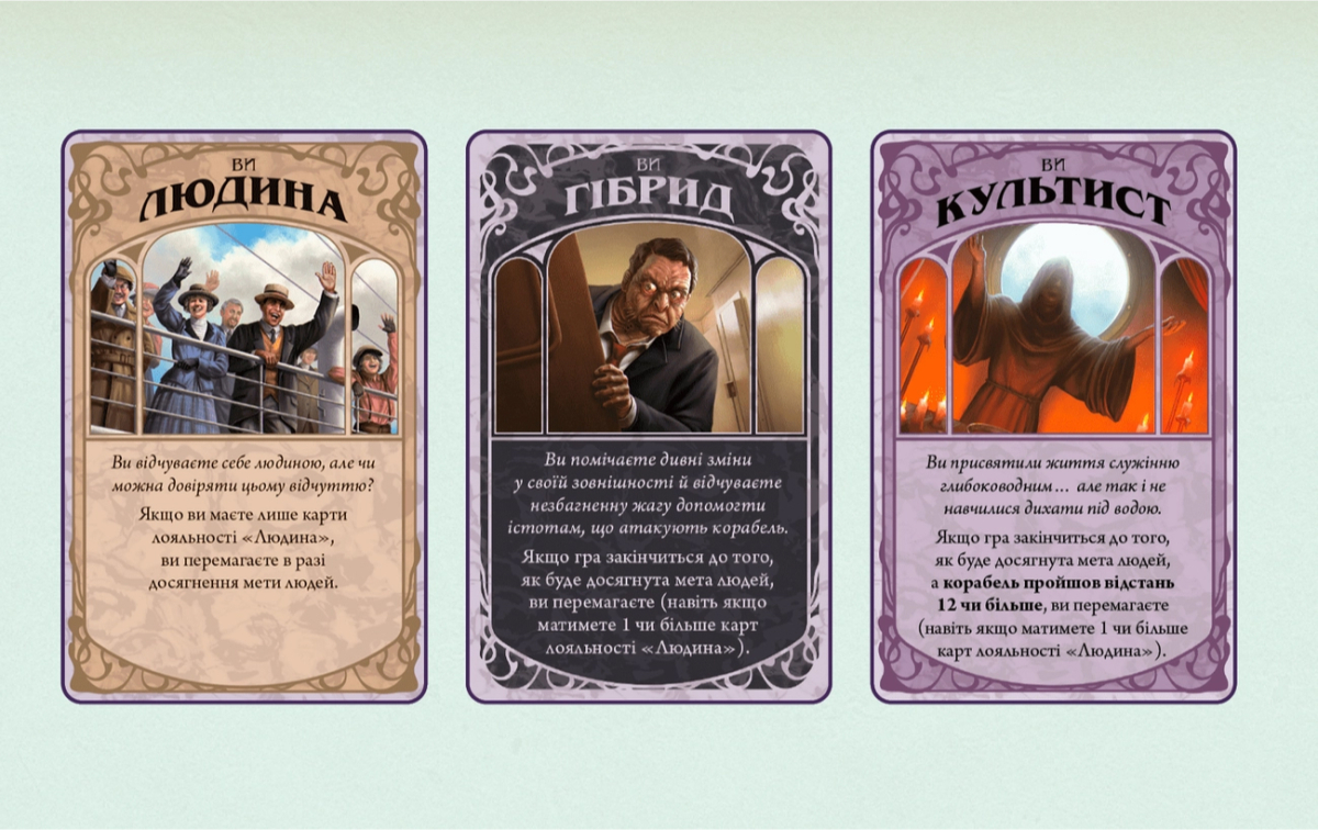 Настольная игра «Непостижимое» - полукооператив с предателями. Некоторые участники играют за людей, которые борются за выживание и пытаются спасти корабль. Другие – за скрытых или открытых предателей, пособников глубоководных, которые стремятся погубить корабль. Изначально никто не знает, кто есть кто. Если «Атлантика» прибудет в Бостон, игроки-люди одержат победу. Иначе побеждают предатели – гибриды и культисты.