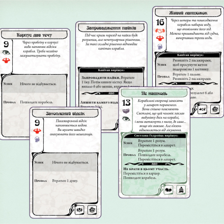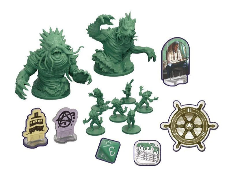 – Активация монстров. На карте мифа указано, кто активируется – глубоководные, Отец Дагон или Мать Гидра. Они перемещаются, атакуют персонажей и пассажиров, повреждают корабль и добавляют новых монстров.