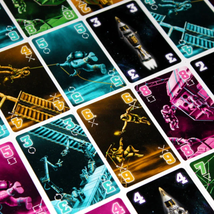 В «Экипаже» пять мастей – розовая, синяя, желтая, зеленая и козыри-ракеты. В начале партии большие игральные карты перетасовываются и раздаются игрокам поровну.