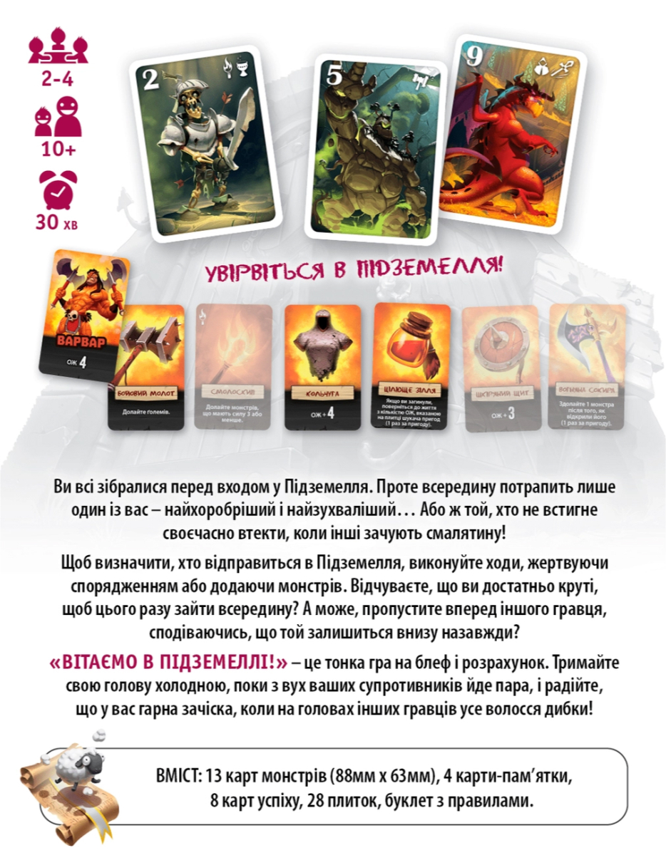 Вітаємо в Підземеллі! игра. Подземная охота на монстров