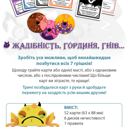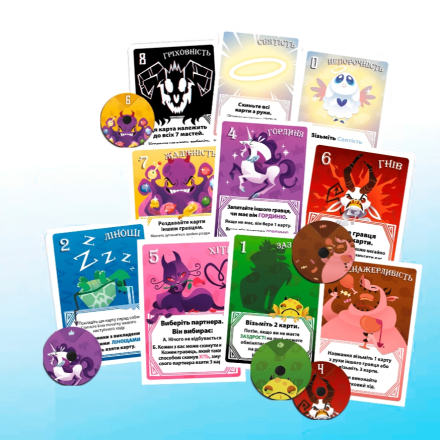 В карточном филлере «The Deadlies» игроки пытаются избавиться от карт грехов на руках. Если какому-то игроку удается освободить свою руку от карт, он уменьшает значение на счетчике-диске нечестивости на 2. Побеждает игрок без карт со значением 0 на диске нечестивости.