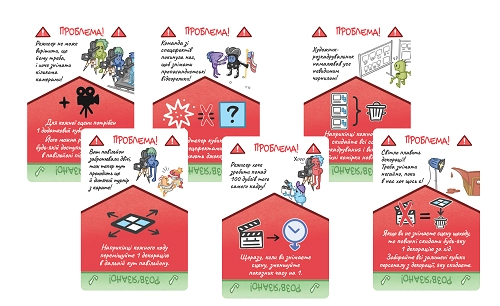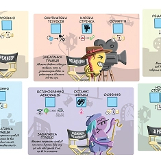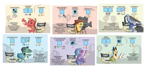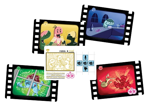 На старте каждый игрок получает по три карты идей, а 2 карты сцен будут размещены на поле для раскадровки. От выбранного уровня сложности игры зависит дедлайн и бюджет. Во время партии также важно будет следить за качеством фильма, которое отмечается специальным маркером.