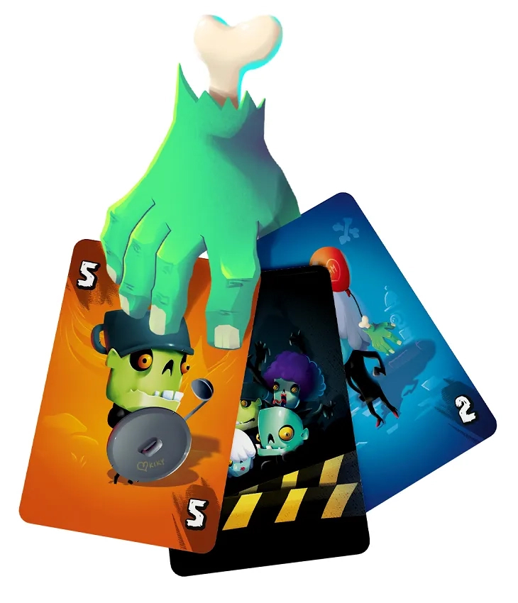 - Топор. Первая из карт с эффектом, разыгрываемая после того, как участник забирает свой ряд в награду. Эффект топора направлен на самого игрока: он должен сбросить одну из карт зомби в своем запасе.