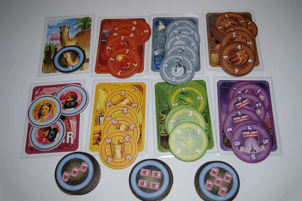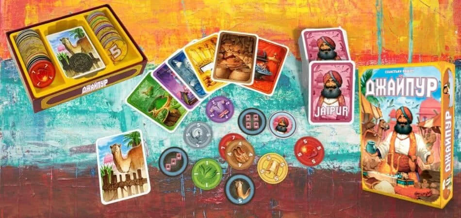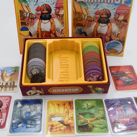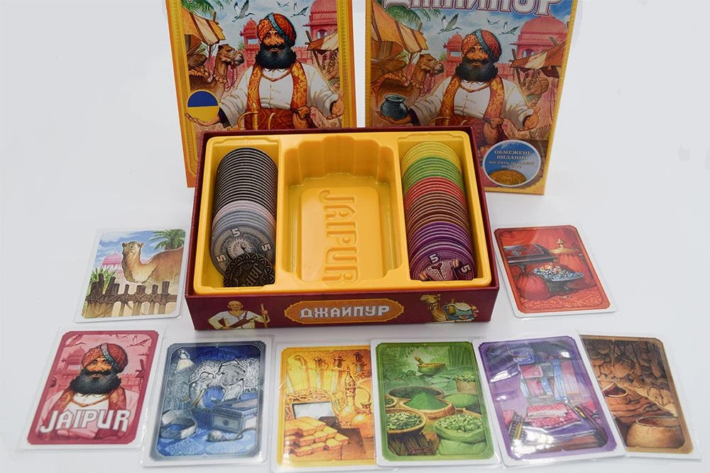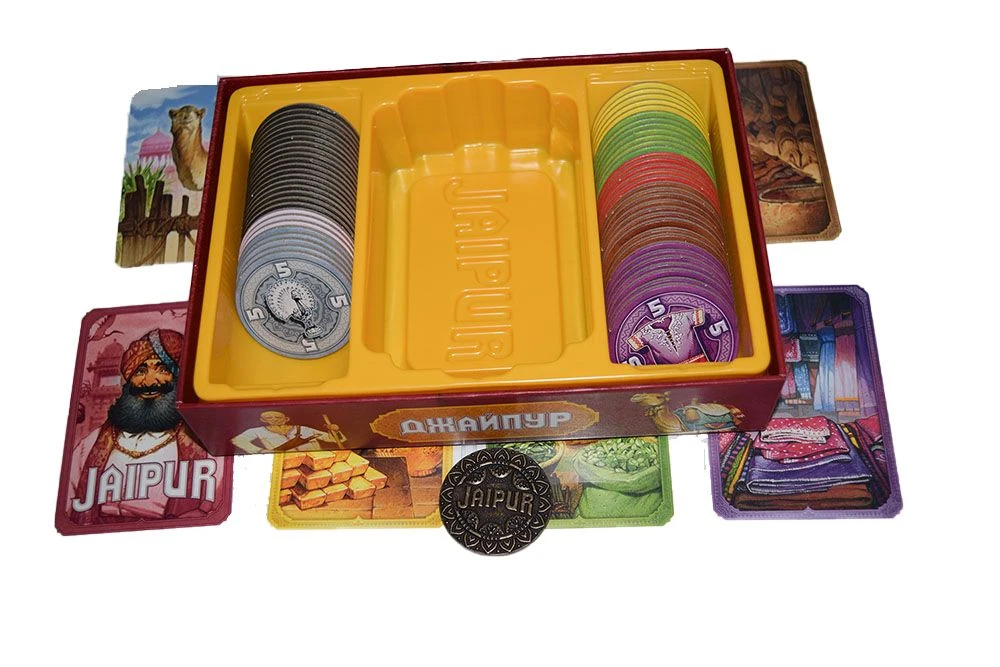 В игре «Джайпур» два торговца сойдутся в торговом противостоянии и определят, кто из них будет единственным поставщиком товаров для Махараджи. Игрокам предстоит совершать манипуляции с товарами – алмазами, золотом и серебром, тканями, пряностями и кожей – а также увеличивать поголовье верблюдов.