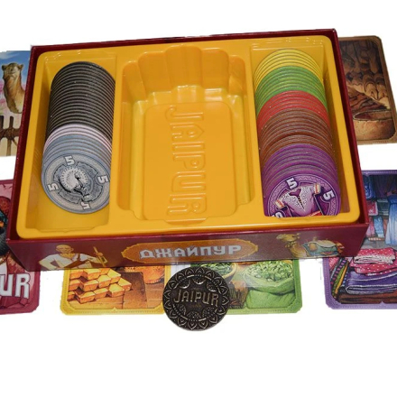 Знаменитая дуэльная игра, уже ставшая классикой. Выпущенная в 2009 году, игра целых пять лет собирала награды на различных престижных конкурсах. «Джайпур» завоевал невероятную популярность среди любителей быстрых настольных игр и по сей день не знает равных в своем жанре.