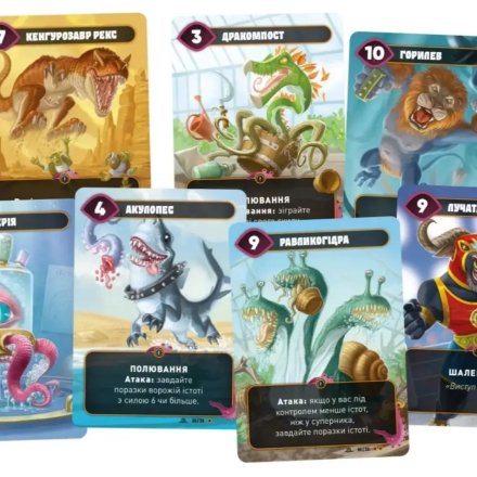 Це космічна дуель, де гравці намагаються довести здоров’я супротивника до нуля, тут нічого нового. Але яким чином – це вже цікаво! Кожен із дуелянтів в порядку черги розігрує карту неймовірних космічних монстрів-гібридів (повірте, тигрова білка це зовсім не те, що ви могли б спершу уявити). Після стадії розіграшу спрацьовують всі унікальні ефекти чудовиська, а на наступний хід він може атакувати.