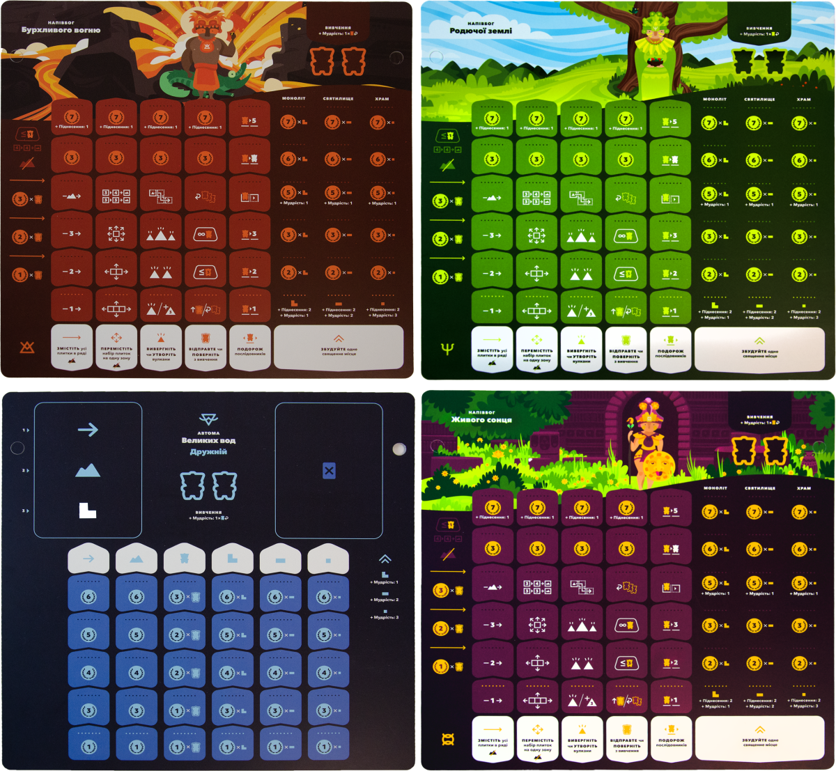 36 плиток священных мест (3 монолита, 3 святилища, 3 храма на игрока)