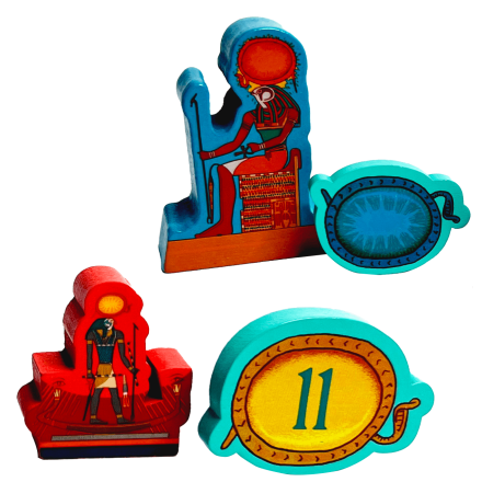 После последнего подсчета очков по завершении Третьей эпохи тот игрок, у которого самая высокая сумма, объявляется победителем! В случае ничьей между двумя или более игроками, решительный фактор – солнечный диск. Игрок, у которого солнечный диск имеет наивысшее значение, определяется победителем и получает главный трофей – признание самого бога Ра!
