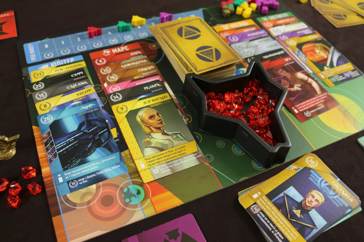 Стратегическая карточная игра по мотивам одноименной антиутопической серии романов Пирса Брауна про тоталитарный мир будущего, разделенный на разноцветные касты. Настольная игра «Red Rising» была разработана в 2021 году знаменитым Джейми Стегмайером (Гикач локализировал его «Косу»), большим фанатом творчества Пирса Брауна. Как и все игры Джейми, «Red Rising» подняла хайп в настольном сообществе и получила довольно высокие оценки и хорошие отзывы на сайте «BoardGameGeek».