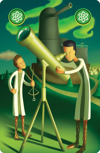 - Карты науки позволяют возвращать на руку карты из игровой зоны и играть новые карты. За счет сброшенной карты науки можно сбросить с руки 5 карт и добрать 5 карт из колоды.