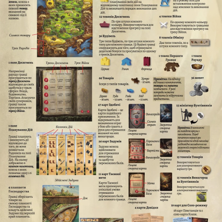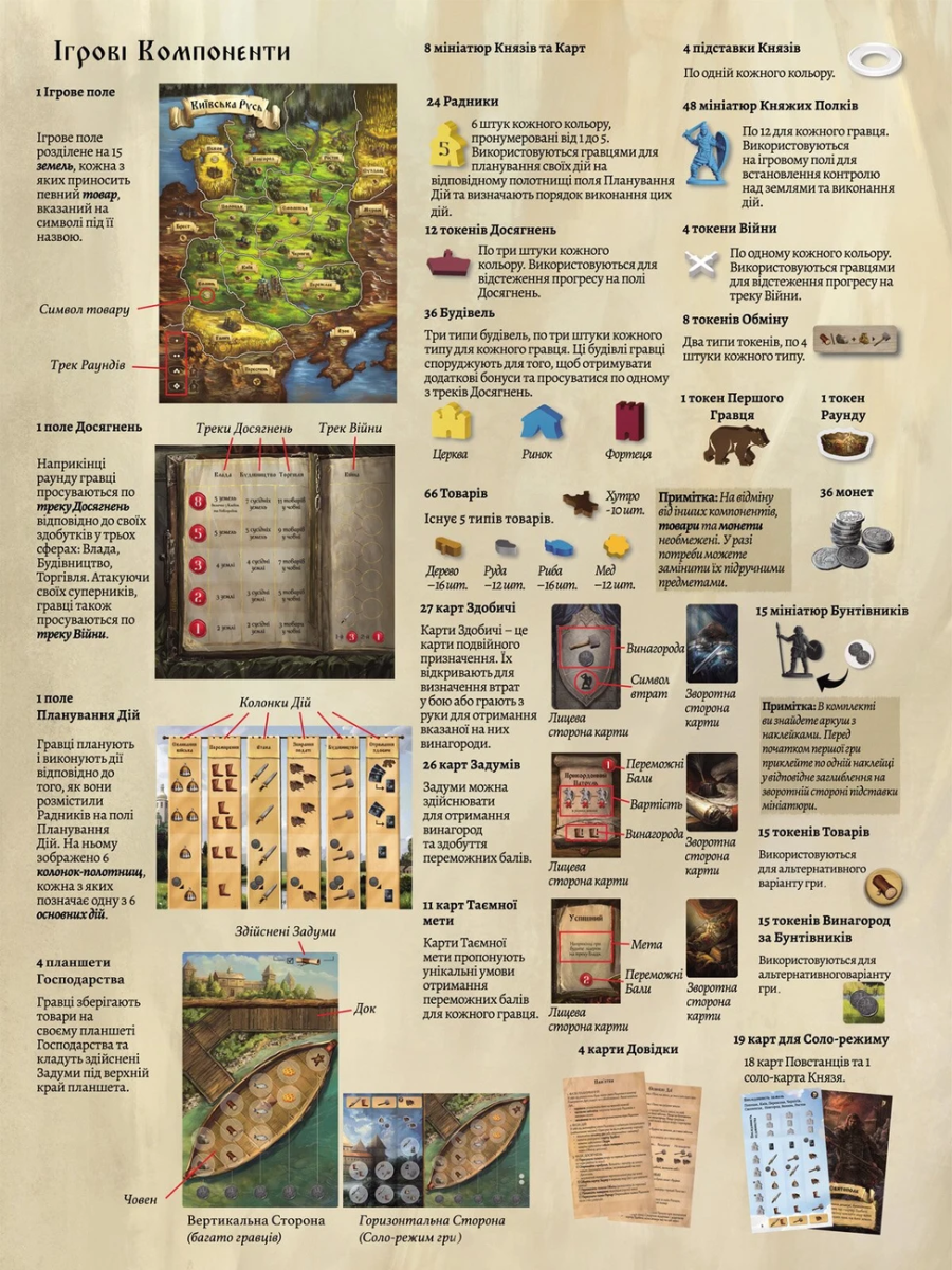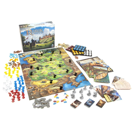 «Rurik: Борьба за Киев» - это великолепная стратегическая игра для 2-4 человек, основанная на миксе двух интересных механик: контроле территорий и аукционе. На протяжении четырех раундов игрокам предстоит отдавать приказы советникам, захватывать земли, строить церкви, форты и рынки, участвовать в битвах, и зарабатывать победные баллы.