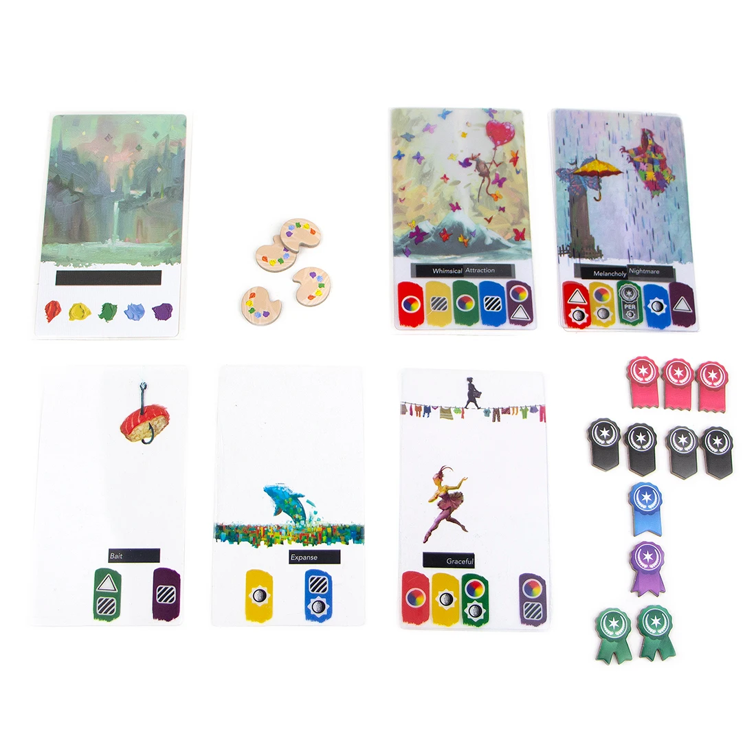 Партия заканчивается, когда все игроки завершат по 3 картины. Участники получают очки за наборы лент одного цвета и за бонусные ленты. Побеждает игрок с наибольшим количеством очков.