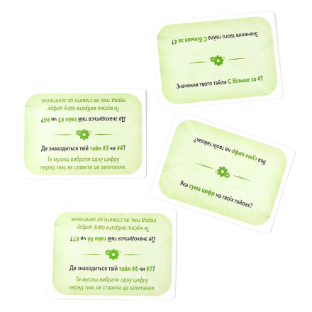 Хотя в игре могут принимать участие от 2-х до 4-х человек, правила дуэльной игры будут значительно отличаться. Если вы играете вдвоем, вам предстоит угадать код оппонента: порядок, цифры и цвет тайлов за его ширмой. В случае партии на 3-х или 4-х, игроки должны будут угадать тайлы, оставшиеся лежать рубашкой вверх в центре стола.