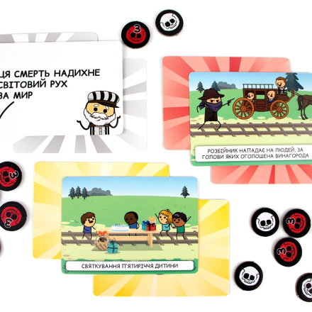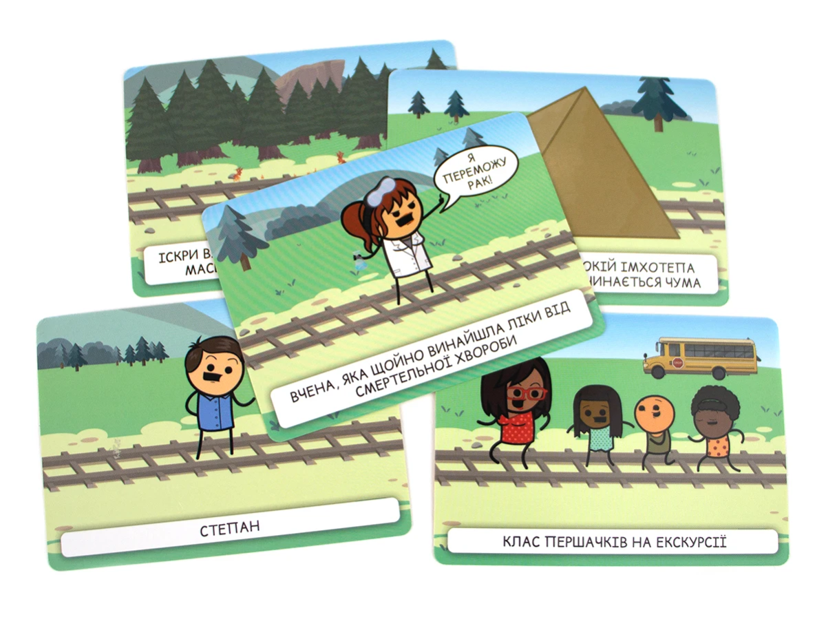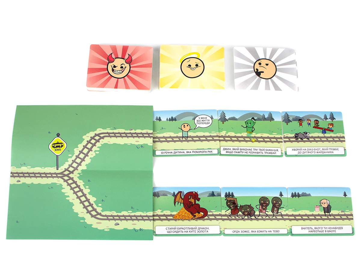 Сумасшедшая пати-игра для большой компании. Настольная игра «Trial by Trolley» была придумана авторами известного веб-комикса «Цианид и счастье». Игра появилась в 2020 году, пройдя через «Кикстартер», где собрала 3,5 миллиона долларов. Это очень прикольная разговорная игра, которая наверняка станет гвоздем любой вечеринки. По мнению Гикача, она понравится и новичкам, и опытным игрокам.